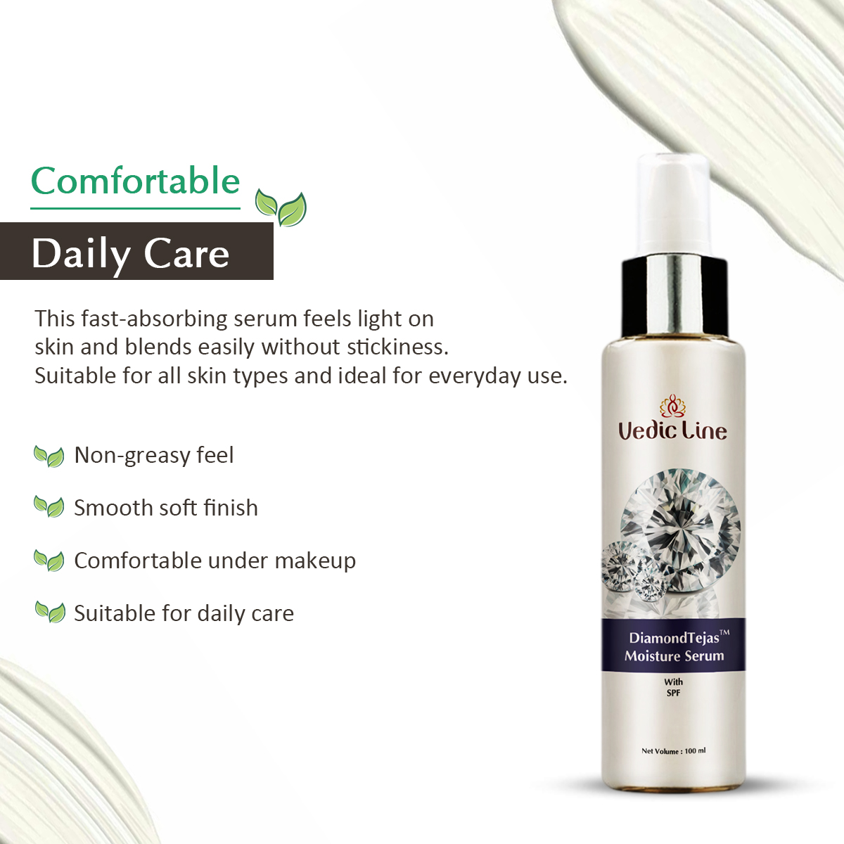Make your skin shine like never before wth Vedicline Diamond Tejas Serum with SPF — where radiance meets protection, and tradition blends with innovation.