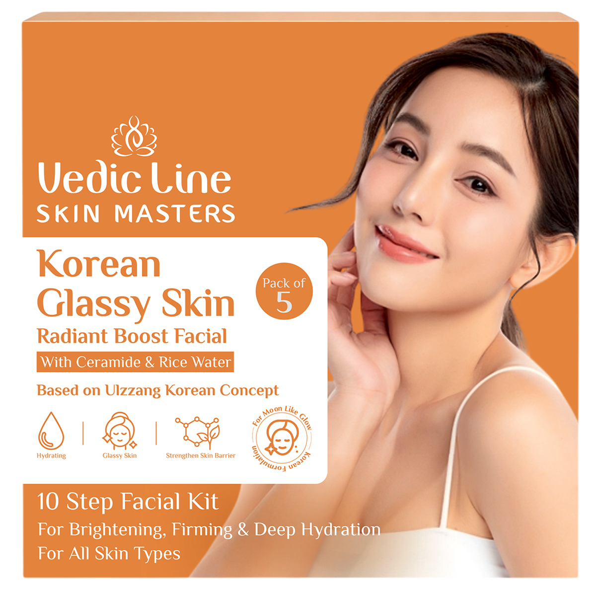 To begin with, the carefully designed Korean Glassy Skin 10-step regimen starts with a deep cleanser to purify, followed by a de-tan pack, exfoliator, and toner to refresh and balance. Next, a collagen gel mask and active serum provide an intense treatment phase, targeting signs of dullness, dehydration, and early aging. Subsequently, massage cream and gel improve blood circulation, while the cryo mask offers a cooling and pore-tightening effect. Finally, one should apply serum to seal in hydration and give the skin a radiant, dewy glow.