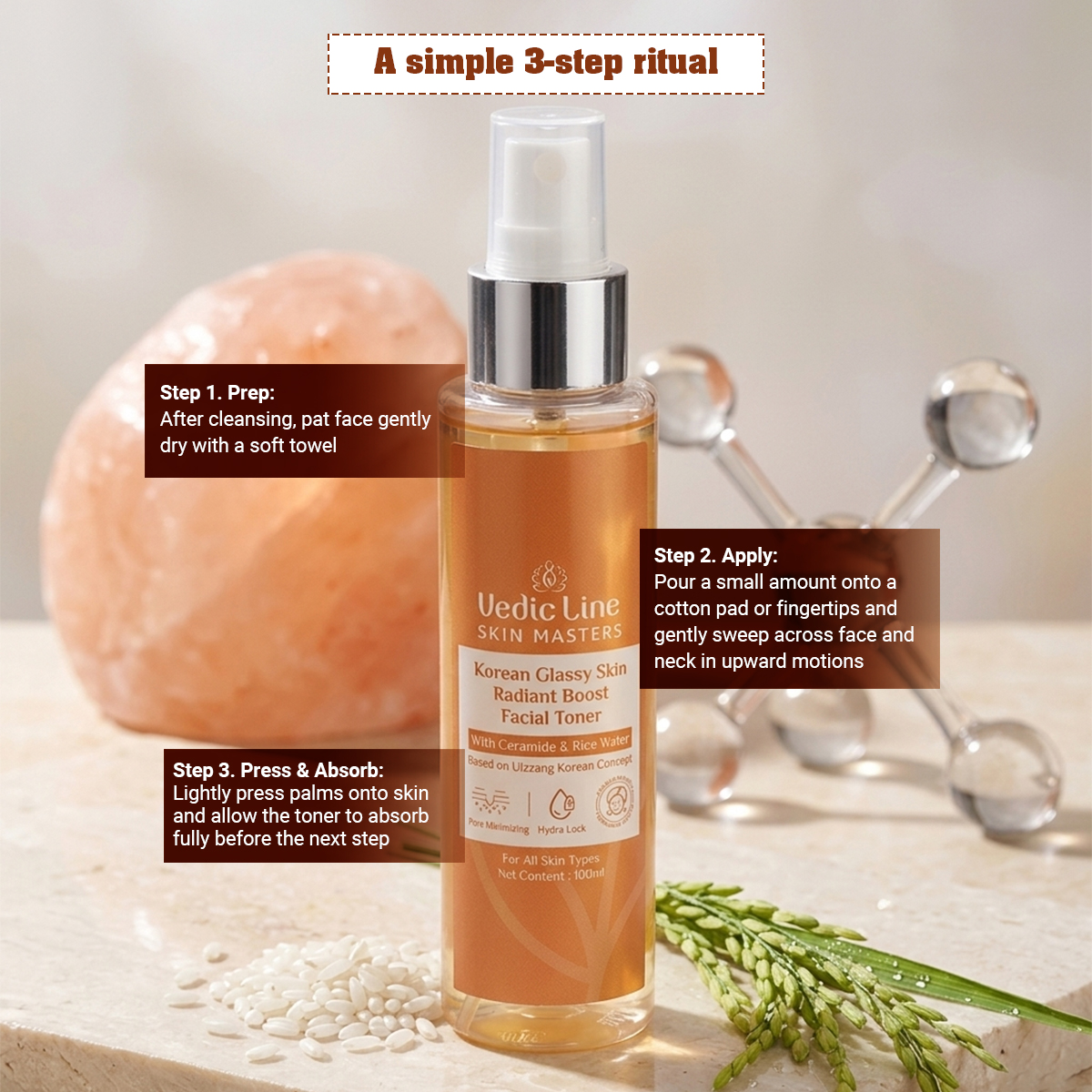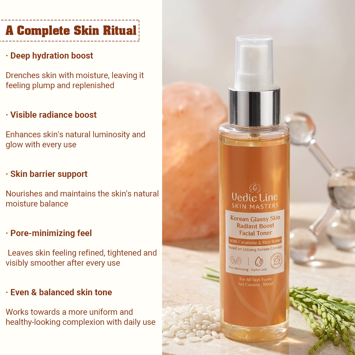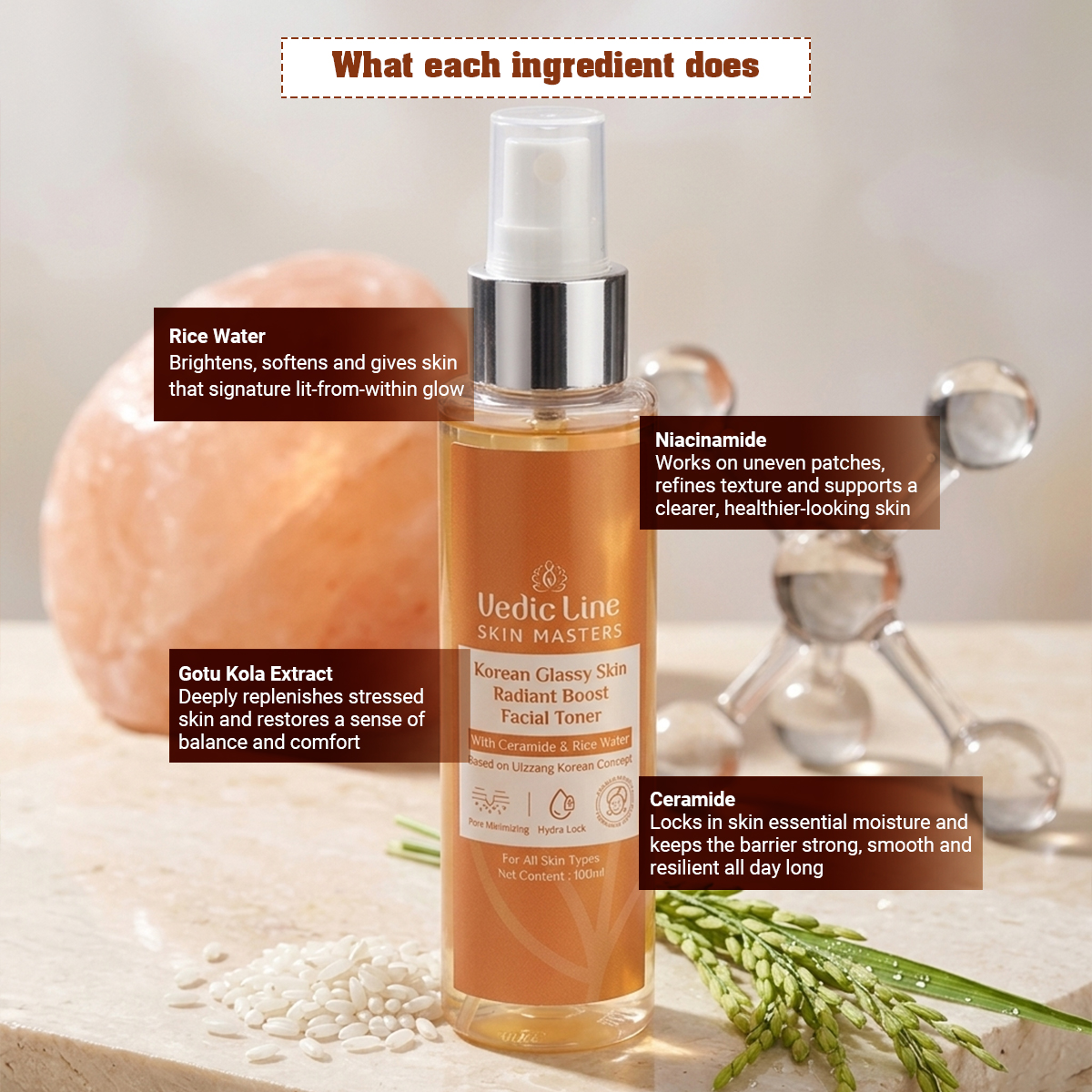 Rice Water — Rich in natural vitamins and minerals, rice water has been used for generations in Korean beauty to brighten skin, reduce dark spots, and give a naturally radiant look. It is simple, gentle, and incredibly effective for all skin tones and types.