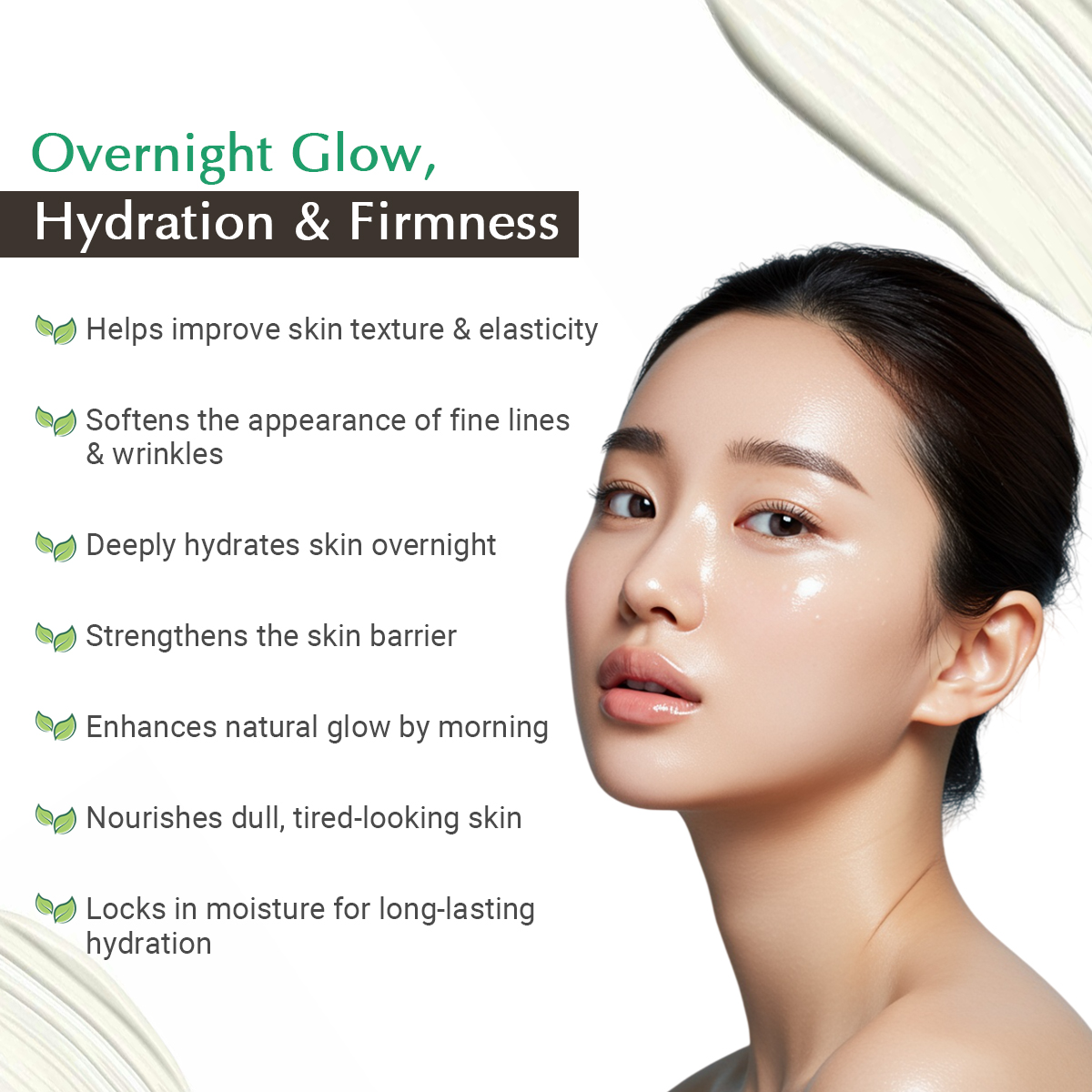 Regular use helps skin feel plump, smooth, and refreshed by morning. This night cream is ideal for those looking to maintain hydration, a glow, and comfort, especially for dry-to-normal and combination skin types.