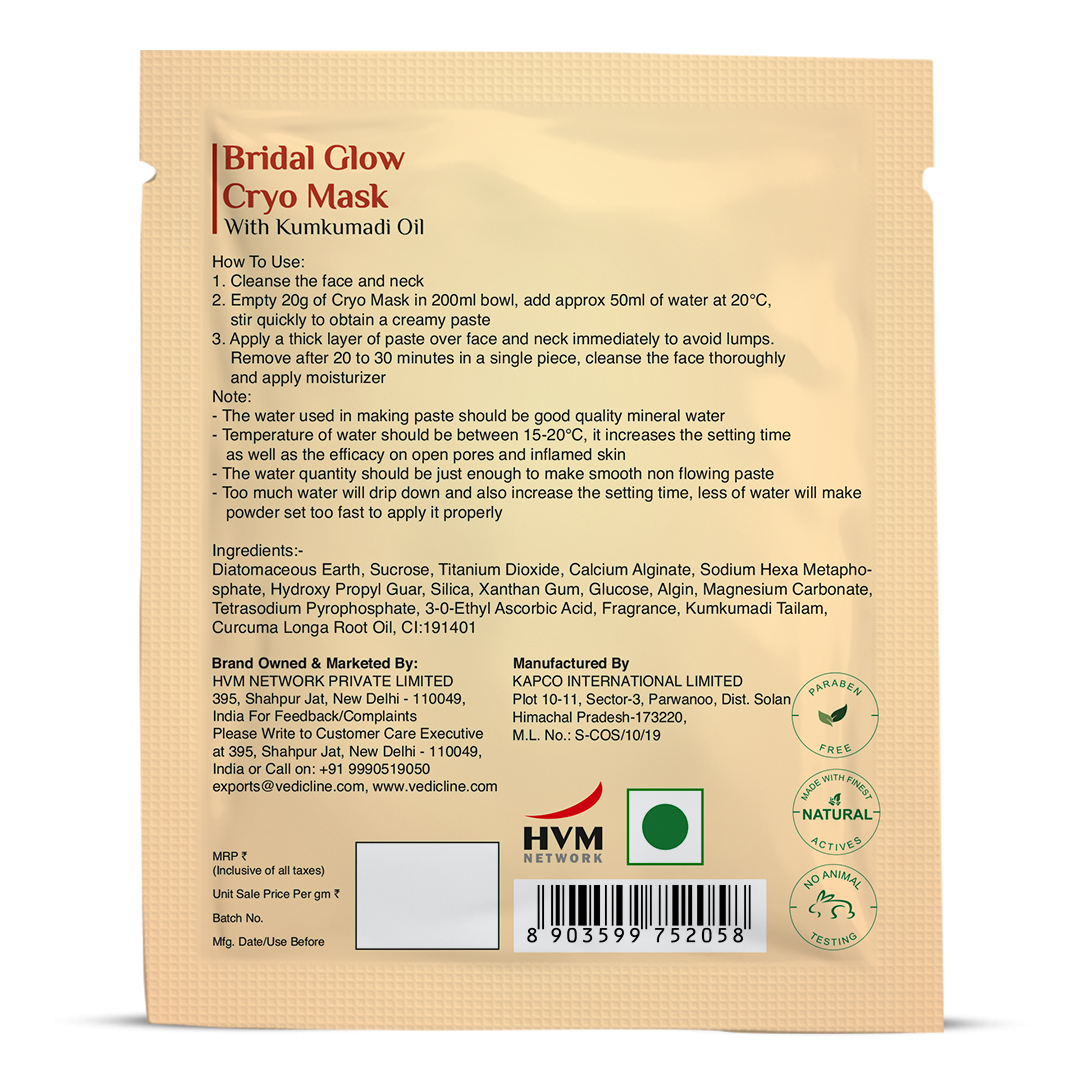 Bridal Glow Cryo Mask is the perfect solution for your skincare woes. With the increasing number of skincare products available today, finding one that truly delivers can be a daunting task. Fortunately, this special cryo mask stands out from the crowd, as it is made from pure Indian Saffron extract, almonds, and other natural oils. Each ingredient is carefully selected to work in harmony with your skin, ensuring that you receive the best possible care. This mask helps deeply nourish your skin and bring about a healthy, refreshed, glowing complexion.