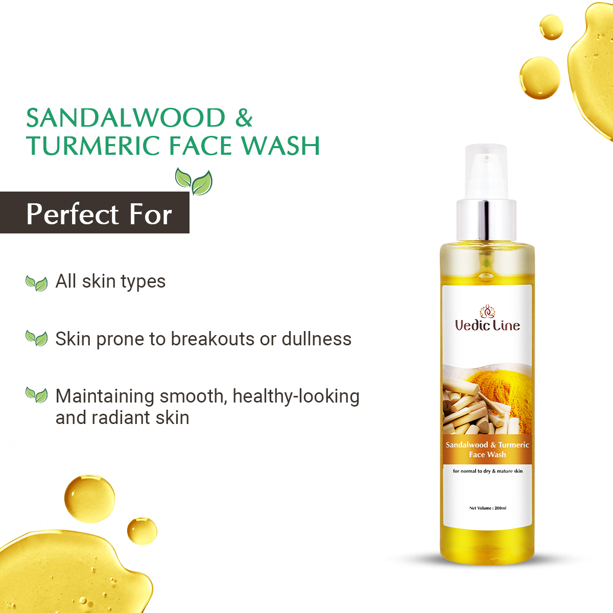 Each pump bursts with the warm, woody scent of sandalwood and the golden touch of turmeric indeed, two time-tested ingredients known for their calming and clarifying powers. Sandalwood soothes, softens, and refreshes stressed-out skin, while turmeric steps in as your natural glow-booster, fighting dullness, blemishes, and uneven tone.