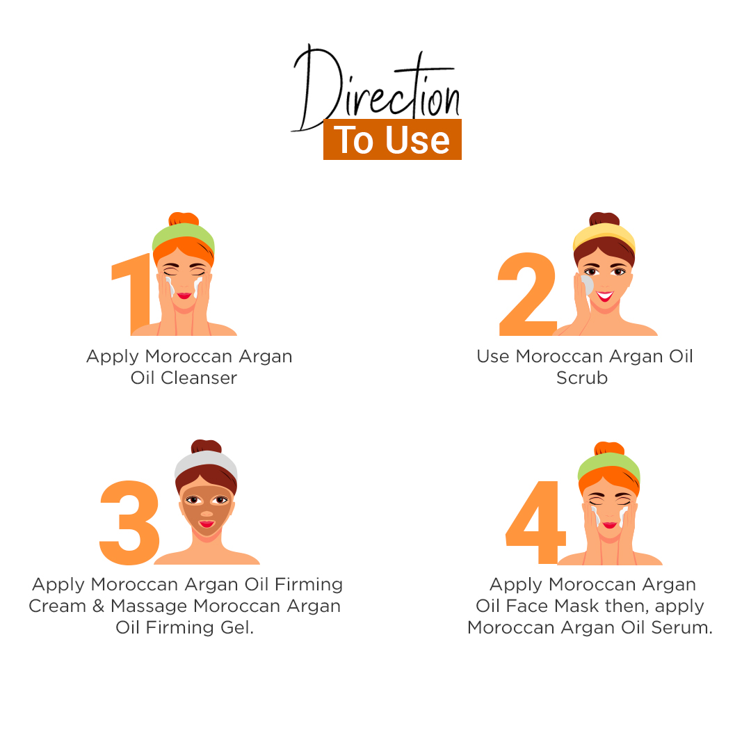 - Scrub – With Moroccan Argan Oil Scrub, Give gently massage for 1 to 12 minutes, along with use Toner and clean it nicely.