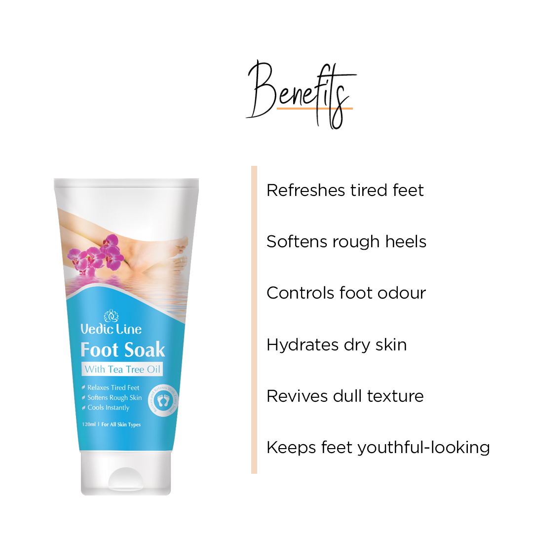 soak can be used by pregnant ladies as it helps to relax the strained or swollen muscles.rnQ: Is Vedicline Foot Soak suitable for every skin type?rnA: Yes, it is suitable for every skin type.r”}” data-sheets-userfor=””>mat=”{"2″:769,”3″:{“1″:0},”11″:4,”12″:0}”>A: Take a bucket of hot water ( or as warm as you can take). Add 2 spoonfuls of the foot soak and stir the water to let the soak melt completely. Dip your feet for a relaxing therapy. You can also scrub your feet with our foot scrub for additional benefits.