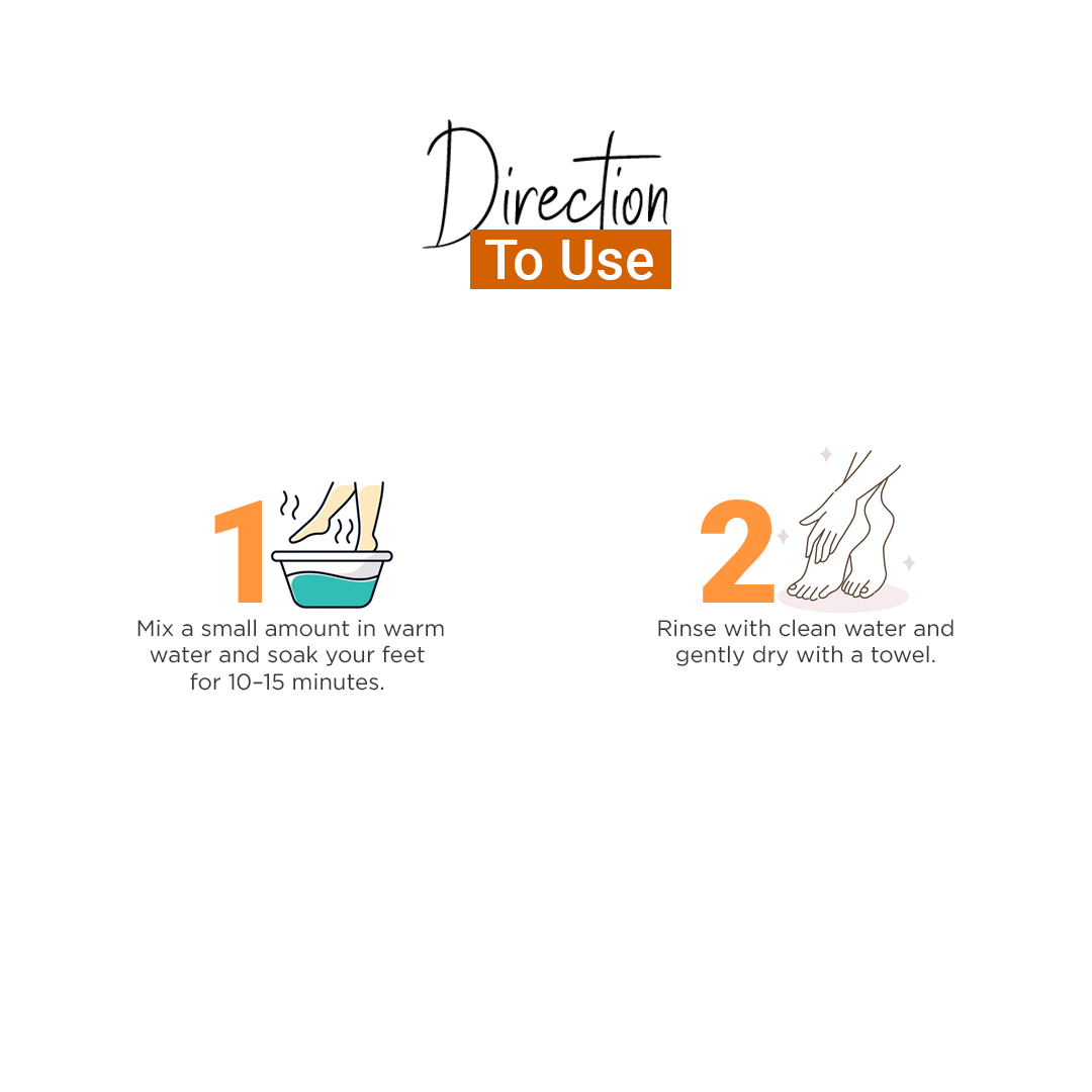 Simply dissolve a small amount in warm water and soak your feet for 10-15 minutes to enjoy an instant boost of relaxation. It is free from harsh chemicals and is suitable for all skin types.
