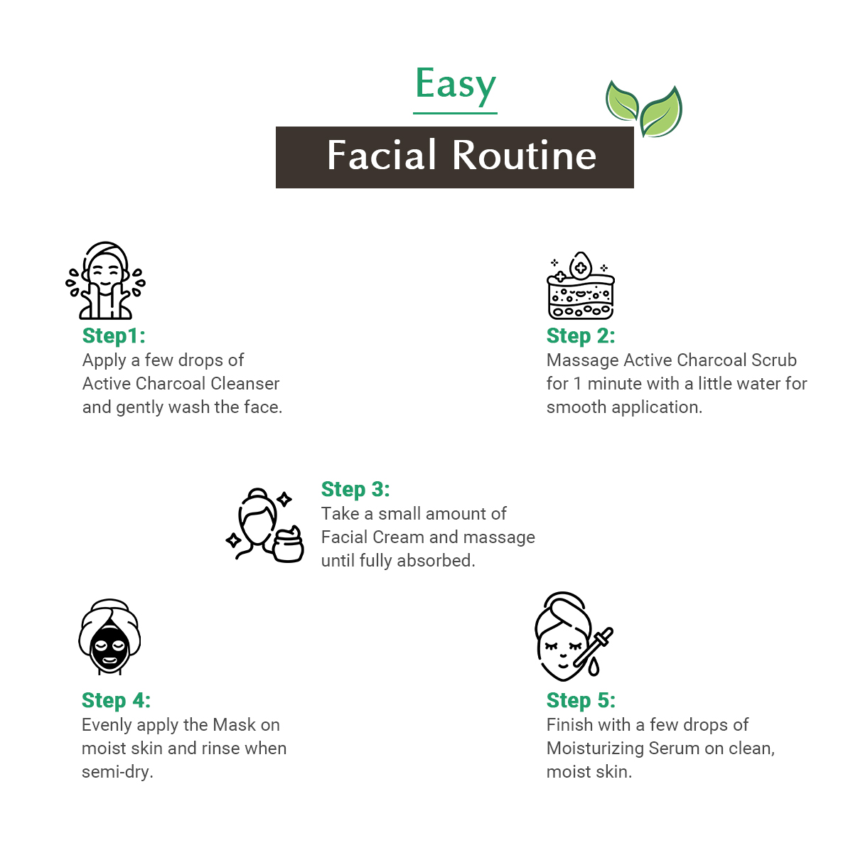 Next, indulge in the Active Charcoal Scrub, which is designed to sweep away dead skin cells and unclog pores with its finely milled particles. In addition, this dynamic exfoliator works deeply yet gently, revealing a smoother skin texture and priming your face for enhanced absorption of subsequent treatments. Consequently, say goodbye to dullness and hello to renewed vibrancy.